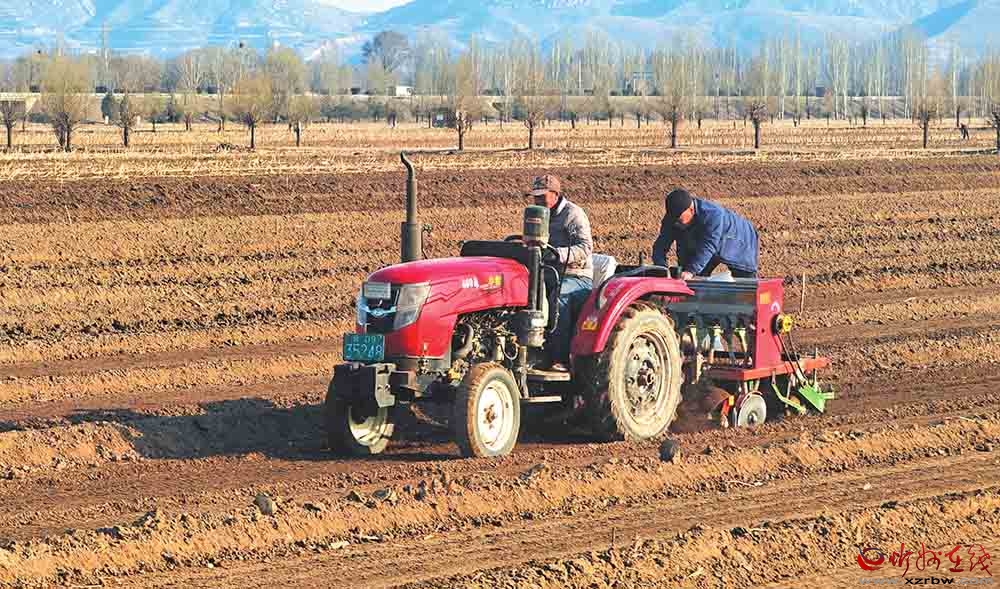近日,在原平市新原街道平地泉村,農(nóng)戶利用晴好天氣,搶抓農(nóng)時播種春小麥。(