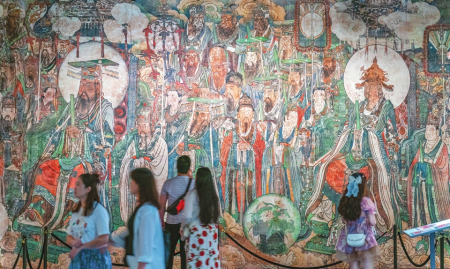而3D打印、將色彩細節(jié)高度還原后的永樂宮壁畫精華——三清殿《朝元圖》,則隨著“觀妙入真——永樂宮壁畫保護與傳承特展”巡回全國,賺足了眼球,成為永樂宮熱度日增的“引流密碼”。