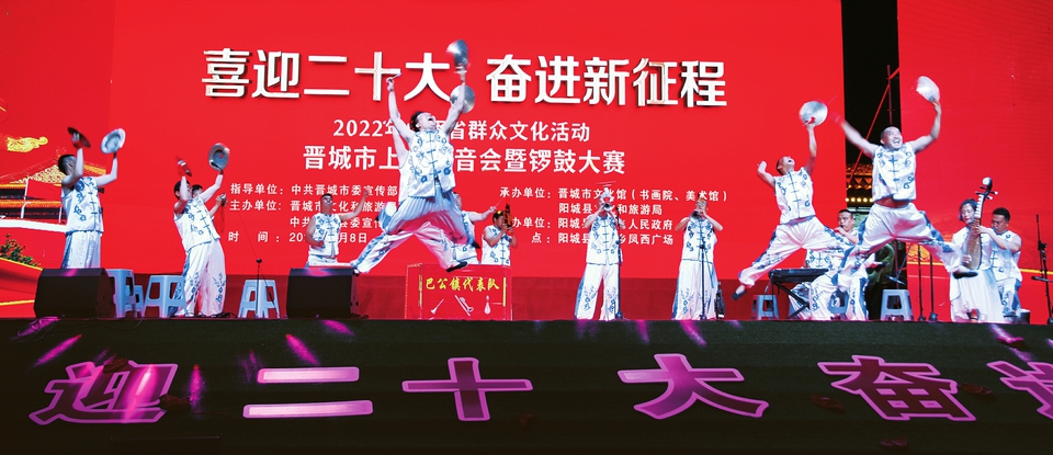 黨的二十大即將召開,三晉兒女歡欣鼓舞,充滿期待。晉城市上黨八音會在鑼鈸并舉、激越高昂的聲樂中,將黨的二十大召開的喜訊,傳遍澤州大地;運(yùn)城市旗袍展演秀出紅紅火火的幸福日子及喜慶之情;臨汾市鑼鼓大賽奏響時(shí)代最強(qiáng)音,禮贊新時(shí)代……三晉大地載歌載舞,一系列主題文化活動(dòng)都表達(dá)著對黨的二十大的翹首企盼,及對祖國更加繁榮昌盛的祝福之情。