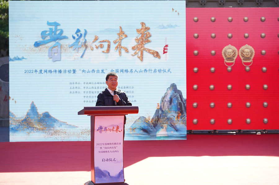 圖為“晉彩向未來(lái)”2022年度網(wǎng)絡(luò)傳播活動(dòng)暨“向山西出發(fā)”全國(guó)網(wǎng)絡(luò)名人山西行活動(dòng)啟動(dòng)儀式現(xiàn)場(chǎng)。宋岳庭、江建橋攝