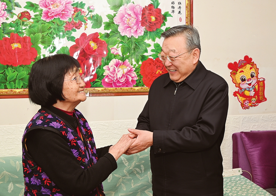 農(nóng)歷龍年春節(jié)來(lái)臨前夕,省委書(shū)記、省人大常委會(huì)主任唐登杰在太原市看望慰問(wèn)老黨員、軍烈屬和困難職工,代表省委、省政府向全省廣大黨員干部群眾送上誠(chéng)摯問(wèn)候和新春祝福。山西日?qǐng)?bào)記者史曉波攝