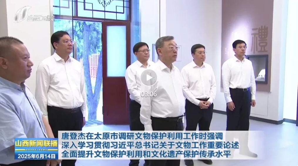 6月13日,省委書記唐登杰在太原市調(diào)研文物保護(hù)利用工作。他強(qiáng)調(diào),要深入學(xué)習(xí)貫徹習(xí)近平總書記關(guān)于文物工作重要論述和對(duì)山西工作的重要講話重要指示精神,以強(qiáng)烈的敬畏之心、珍愛之心、責(zé)任之心做好文物保護(hù)利用和文化遺產(chǎn)保護(hù)傳承工作,為建設(shè)中華民族現(xiàn)代文明作出山西貢獻(xiàn)。