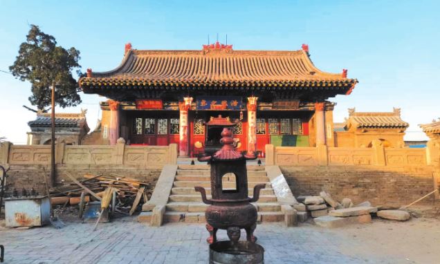 東關(guān)關(guān)帝廟位于原平市崞陽(yáng)鎮(zhèn)東關(guān)村,距崞陽(yáng)城東門外約100米。始建年代不詳,據(jù)正殿梁架題記載,清咸豐三年(1953)重修,現(xiàn)存建筑為清代遺構(gòu)。東西長(zhǎng)25.5米,南北寬87米,占地面積2218平方米。坐北朝南,二進(jìn)院落布局,中軸線建有影壁、大門、正殿和圣母殿,兩側(cè)為東西配殿。正殿磚砌臺(tái)基,前設(shè)月臺(tái),其上三面設(shè)勾欄、望柱,欄上雕有各種花卉、如意及禽獸。殿身面寬三間,進(jìn)深六椽,單檐懸山頂。七檁前后廊式構(gòu)架,斗拱五踩重翹,平身科每間一攢,出45度斜拱,前檐各間均設(shè)四扇六抹萬字紋格扇門,殿內(nèi)新塑像3尊。圣母殿磚砌臺(tái)基,殿身面寬三間,進(jìn)深三椽,單檐硬山頂,四檁前廊式構(gòu)架。明間四扇六抹萬字紋格扇門,次間為格扇窗。殿內(nèi)新塑像3尊。廟內(nèi)存清代重修關(guān)帝廟碑3通,殘碑1通,石獅2對(duì)。1981年列為原平市(縣級(jí))文物保護(hù)單位。2022年列為第三批市級(jí)文物保護(hù)單位。