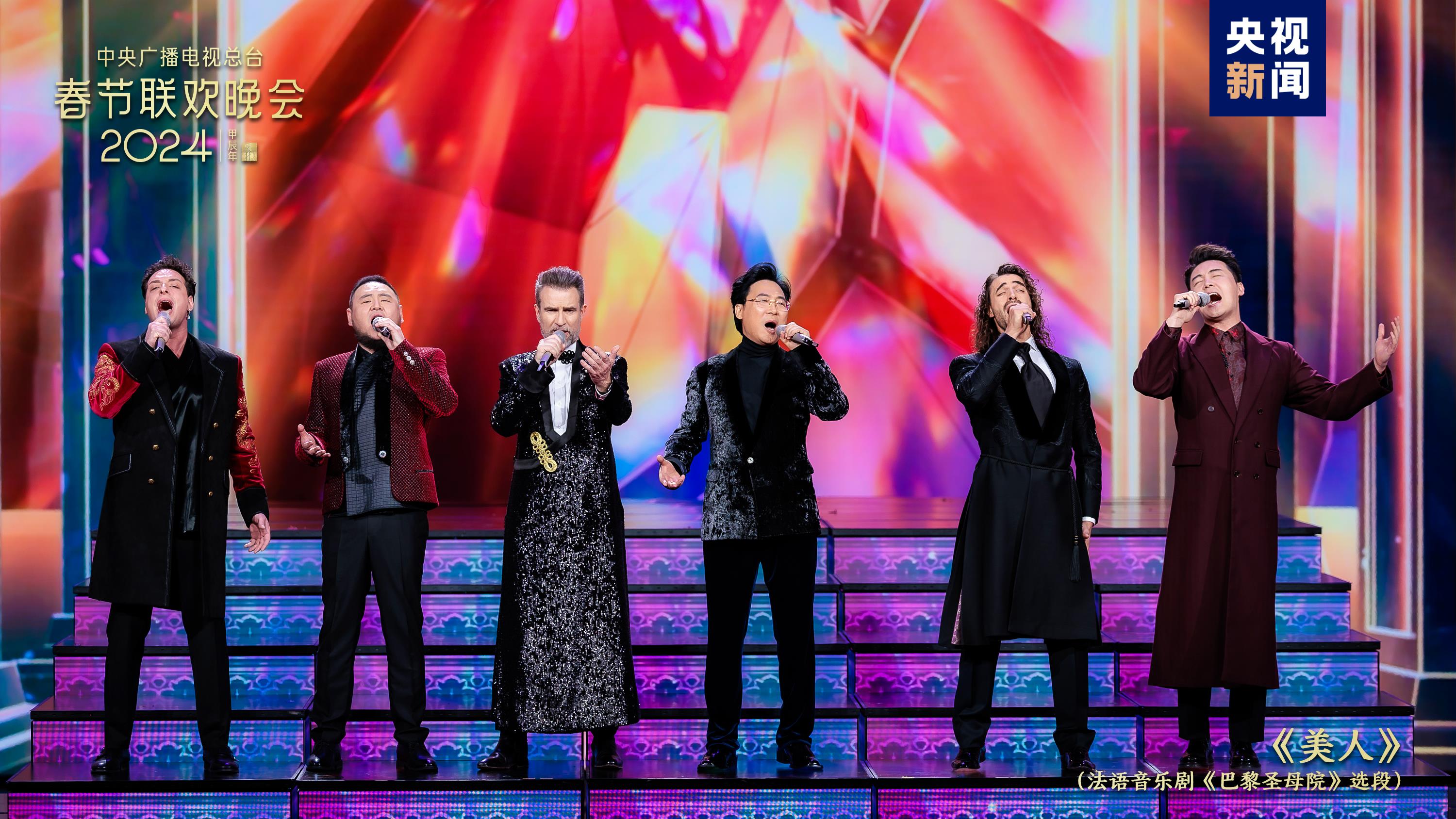 伴著一曲動(dòng)感快樂(lè)的《曬share》,大張偉、劉宇寧與全球網(wǎng)友聯(lián)屏共舞“龍年主題舞蹈”,分享春節(jié)的喜慶歡樂(lè)。這支舞蹈來(lái)自總臺(tái)在海內(nèi)外社交平臺(tái)發(fā)起的龍年主題舞蹈挑戰(zhàn)賽,目前已吸引68個(gè)國(guó)家和地區(qū)的網(wǎng)友熱情參與,全球閱覽量超5.89億。今年正值中法建交60周年暨中法文化旅游年,索拉爾、廖昌永、吉安·馬可·夏雷提、張英席、安杰洛·德?tīng)枴ぞS奇奧、袁岱等中外藝術(shù)家共同演繹《美人》(法語(yǔ)音樂(lè)劇《巴黎圣母院》選段)。全球共舞,以歌會(huì)友,總臺(tái)春晚用文藝精品促進(jìn)文化交流互鑒,讓美美與共的文明百花園生機(jī)盎然。