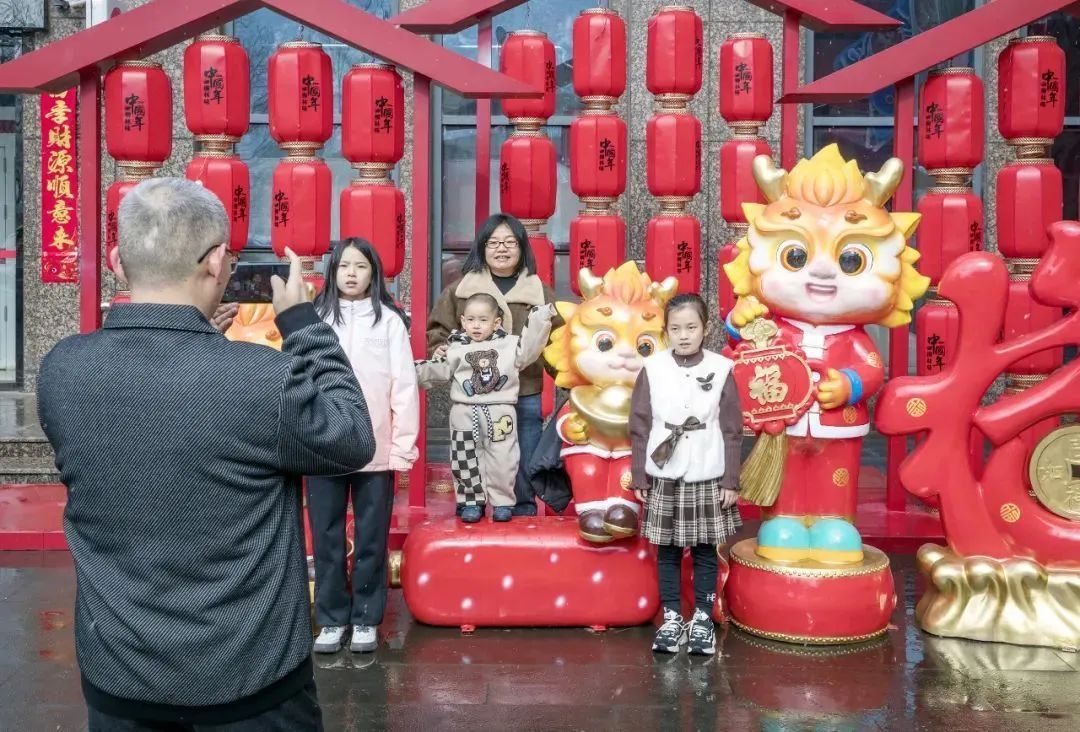 人們在陽泉記憶·1947文化園舉辦的2024新春游園會上打卡拍照