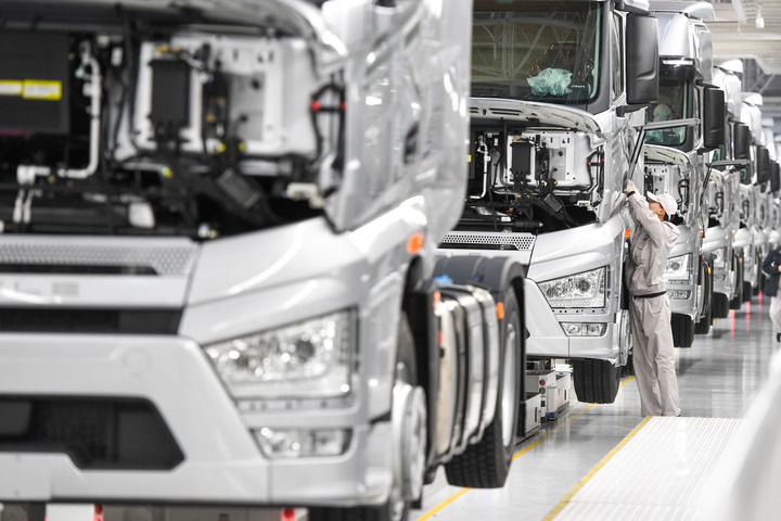 2024年2月19日,工人在位于吉林省長(zhǎng)春市的一汽解放J7整車(chē)智能工廠裝配車(chē)輛。新華社記者 張楠 攝