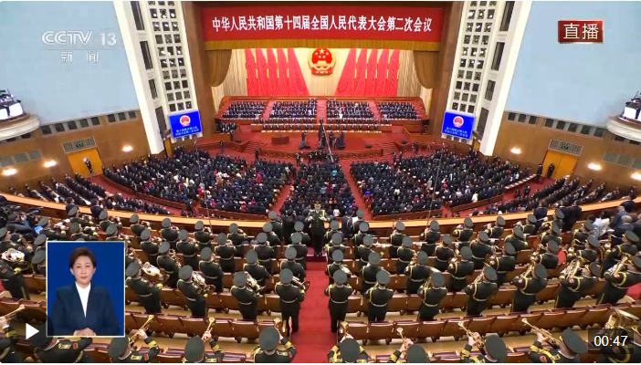 獨家視頻丨十四屆全國人大二次會議開幕 全場高唱國歌