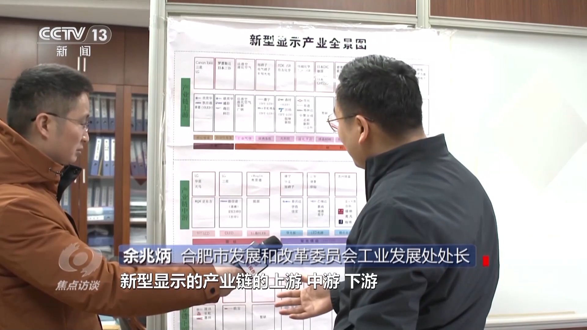 合肥市發(fā)展和改革委員會工業(yè)發(fā)展處處長 余兆炳:新型顯示產(chǎn)業(yè)全景圖上面顯示了合肥市發(fā)展新型顯示的產(chǎn)業(yè)鏈的上游、中游、下游本地的優(yōu)勢企業(yè)和龍頭企業(yè)。有這個全景圖其實(shí)是我們對標(biāo)作戰(zhàn)、掛圖作戰(zhàn)、非常可視化的作戰(zhàn)。