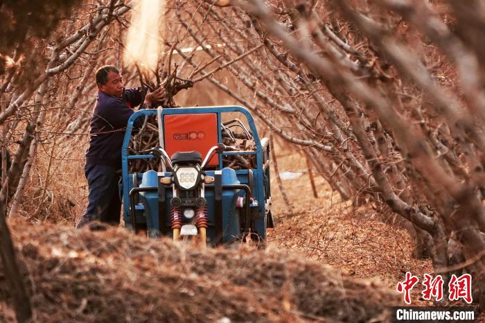 桃農(nóng)正加緊修剪清理油桃樹上的枯枝。高新生 攝