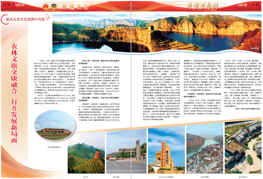 “十四五”以來,偏關(guān)生態(tài)文化旅游示范區(qū)始終堅(jiān)持以習(xí)近平新時代中國特色社會主義思想為指導(dǎo),全面貫徹黨的二十大及二十屆歷次全會精神,按照省市部署要求,堅(jiān)定踐行綠色發(fā)展理念,深入實(shí)施“三綠”發(fā)展戰(zhàn)略,向新發(fā)力,逐綠前行,高質(zhì)量發(fā)展駛?cè)肟燔嚨?。老牛灣、紅門口地下長城2個4A級景區(qū)成功創(chuàng)建,乾坤灣獲批省級旅游度假區(qū);長城一號旅游公路偏關(guān)老牛灣段入選全省旅游公路28個精品示范段之一;老牛灣村獲得“中國美麗休閑鄉(xiāng)村”和“農(nóng)家樂特色村”雙稱號,入選“中國慢生活休閑體驗(yàn)區(qū)”,被中央宣傳思想文化工作領(lǐng)導(dǎo)小組評為第七屆全國文明村;水泉村獲評省級鄉(xiāng)村旅游重點(diǎn)村;黃河宿集入選首批山西省總工會職工療休養(yǎng)服務(wù)點(diǎn)名單。